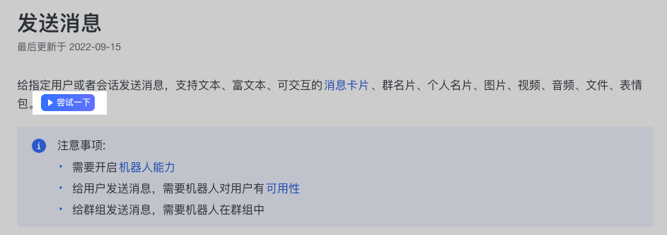 2.根据文档内的请求参数描述,调用发送消息接口。