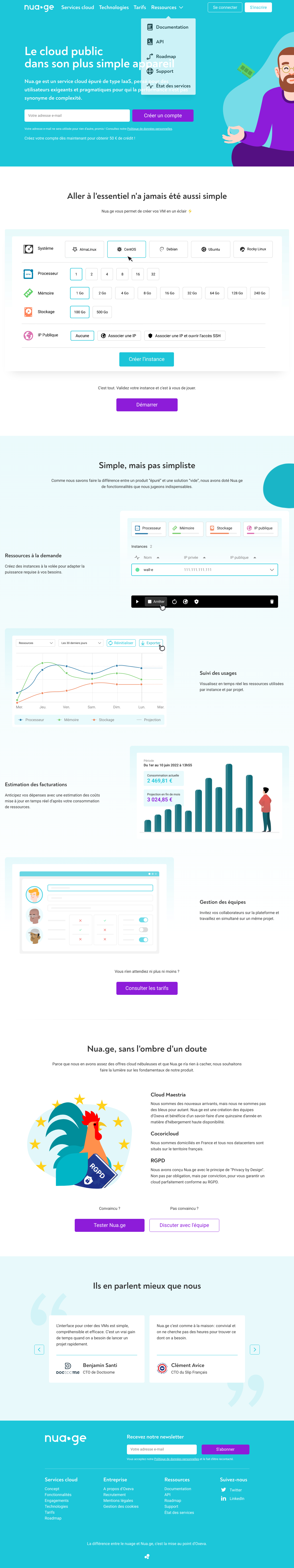 更多Nua.ge是一家提供简洁型IaaS云服务的公司,专为追求性能且不喜复杂操作的用户提供服务。公司主营业务包括按需创建虚拟机、实时监控资源使用情况、实时估算账单以及团队管理功能。Nua.ge强调其云服务的透明度,强调其符合RGPD的隐私设计,并以法国为数据中心所在地。