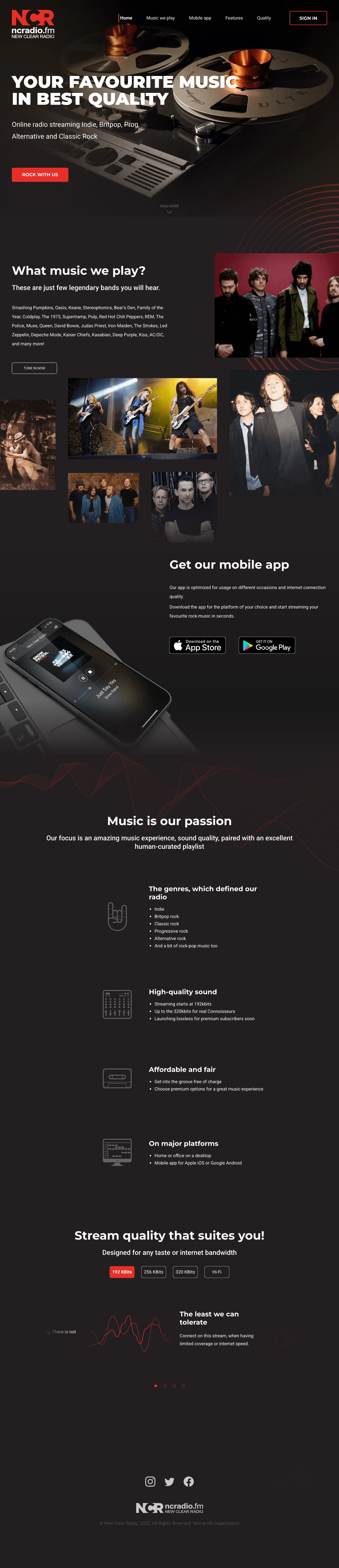 更多New Clear Radio是一家提供高质量在线音乐流媒体服务的电台,主营Indie、Britpop、Prog、Alternative和Classic Rock等音乐风格。电台以卓越的音乐体验和高品质声音为特色,提供192kbits至320kbits的流媒体服务,并即将为高级订阅者推出无损音质。