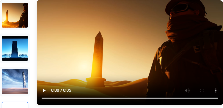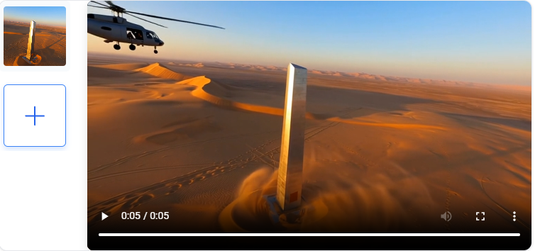 沙漠巨型金属方尖碑可生成沙漠中金属方尖碑与士兵互动的戏剧性场景,光影效果震撼,适合CG场景和电影概念设计。