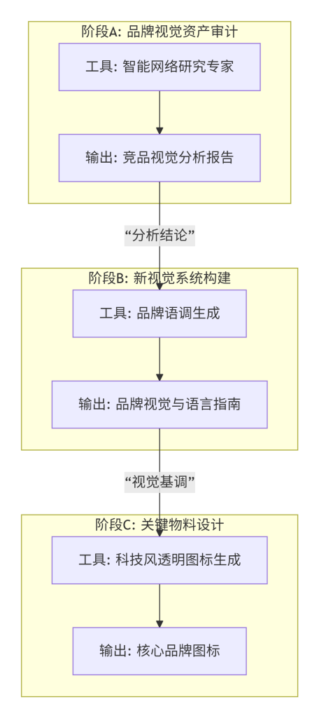 以下流程图清晰地展示了我们如何从市场调研开始,一步步构建出全新的品牌视觉体系:
