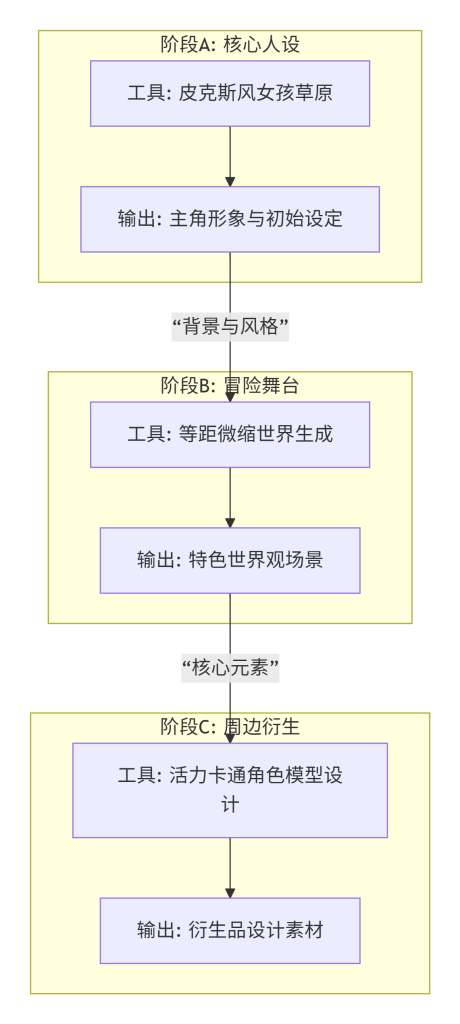 以下流程图清晰地展示了我们如何从零开始,构建一个拥有角色、世界和产品的完整IP体系: