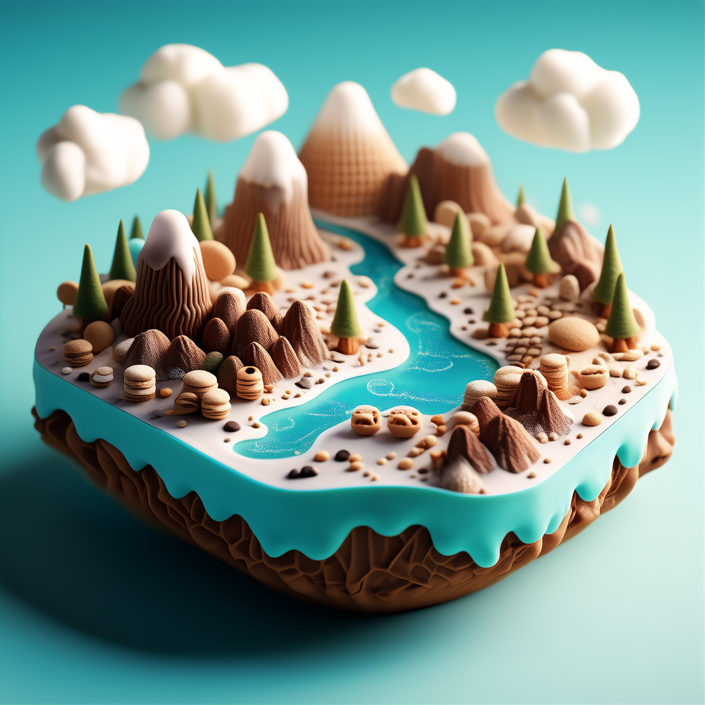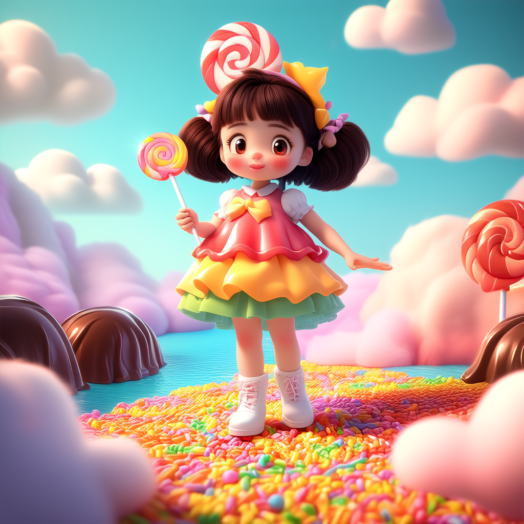 输出内容:工具生成了一幅精致迷人的等距视角糖果岛屿场景。