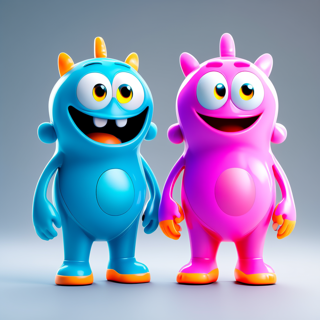 输出内容:工具根据我们的描述,生成了两个活灵活现、表情丰富的卡通角色形象。