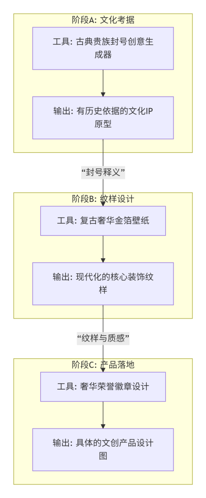 阶段目标:本阶段是文创的“灵魂”所在。旨在为一个历史概念找到具体、有据可依、且富有故事性的文化IP原型。它为后续设计提供坚实的理论根基和叙事素材,避免设计成为无源之水。