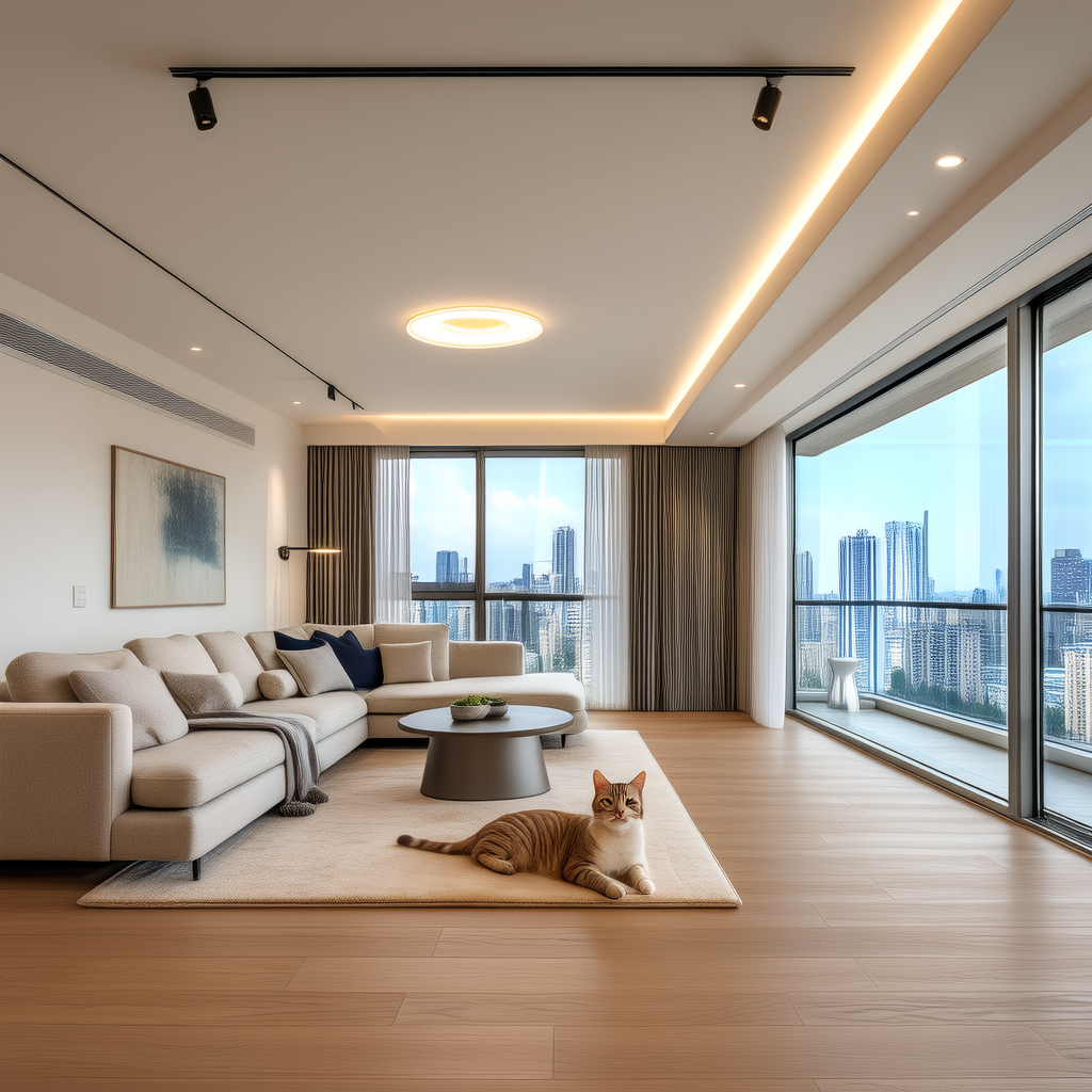 阶段目标:优秀的产品需要融入生活。本阶段,我们基于第一阶段设计的“宠物类型与风格”,生成一个能完美烘托产品调性、展现其使用场景的现代家居环境,让概念图变得真实可感。