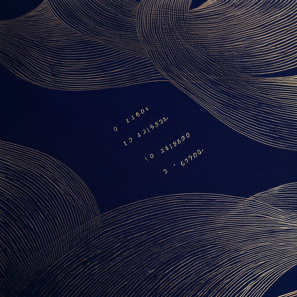 【纪念册封面:基于第二阶段生成的极简抽象线条与烫金数字水印的布面精装设计图】