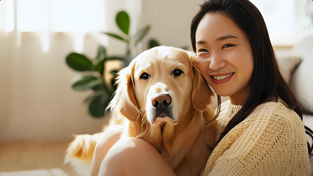 "prompt": "人物与宠物互动, 深情凝视特写, 浅景深, 自然光影",