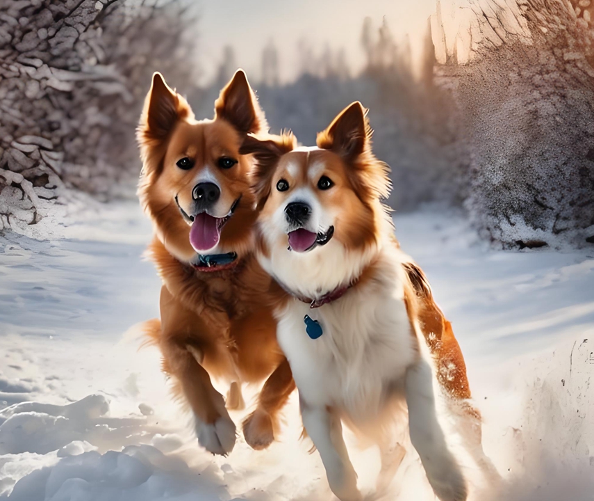 "prompt": "雪地宠物, 欢乐嬉戏, 高细节毛发, 动态捕捉, 自然光影",