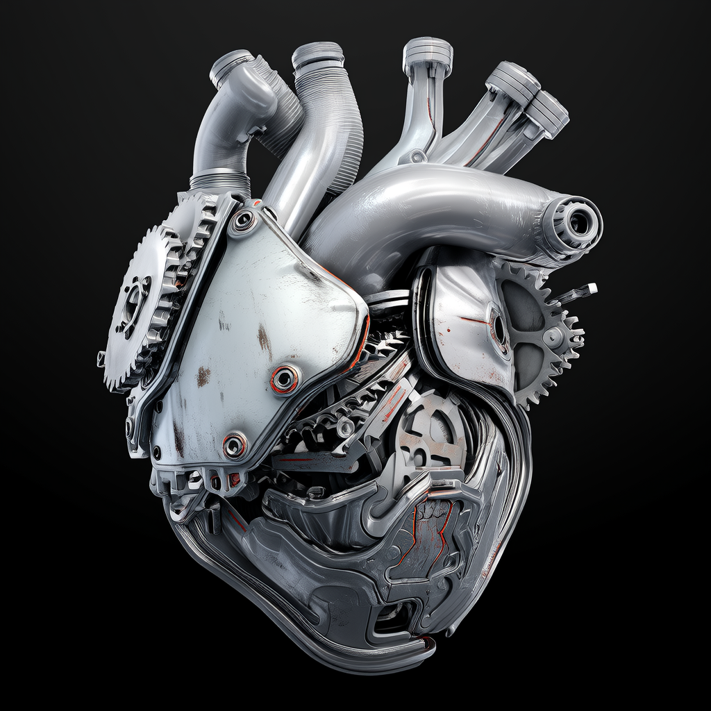 "机械结构": "精密的齿轮与连杆试图拼合成一颗心的形状,但留有无法弥合的缝隙",