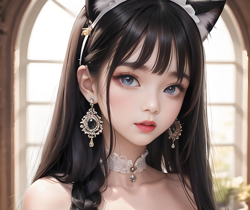 "prompt": "萌猫少女动态特写, 可爱动作, 面部细节",