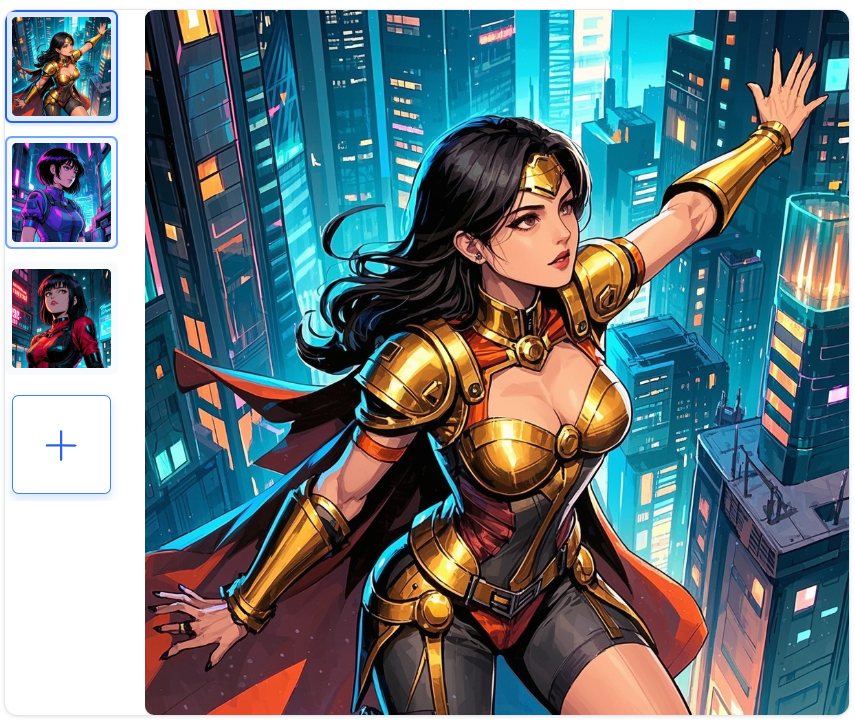 "prompt": "复古赛博朋克女英雄, 高光, 未来科技感",