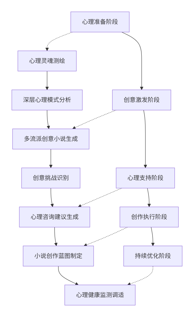 | 心理准备 | 心理灵魂测绘 | 10阶段深度心理分析,识别创作障碍根源 | 问题描述、个人信息、心理探索意愿、希望目标 |
