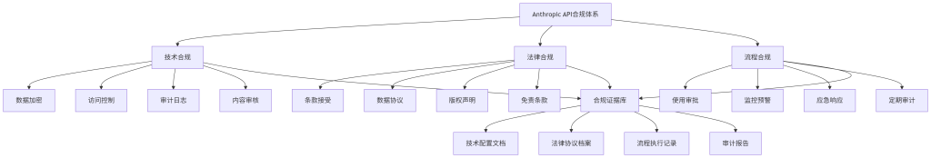 图1:API合规管理体系架构(设计意图:展示合规要求的三个维度和证据管理;关键配置:技术、法律、流程三个合规方向;可观测指标:合规项目完成度、证据完整性)