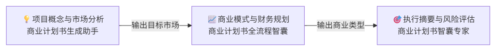 | 项目规划 | 商业计划书生成助手 | 生成BP基础框架与市场分析 | 商业创意、目标市场、价值主张 |