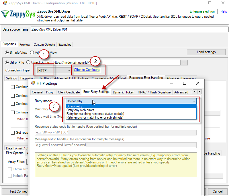 对于响应不稳定的 Web 服务,可启用连接重试功能:
