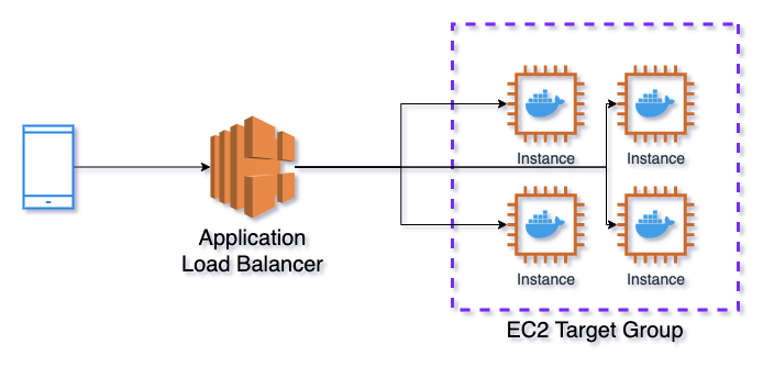 1. 应用程序负载均衡器(ALB)→ EC2 目标组(TG)→ 弹性容器服务(ECS)