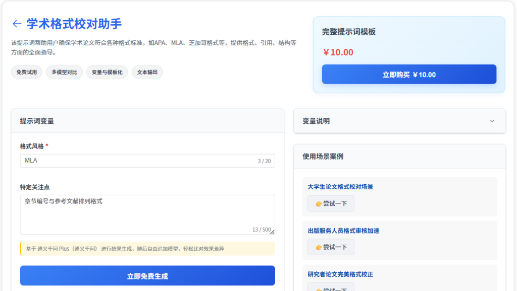 你的"格式审查官"。投稿前,将全文参考文献和引文格式交给它,确保其严格符合APA、MLA等期刊要求,避免因格式问题被退稿。