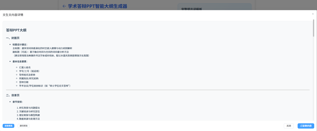 1. 学术答辩PPT智能大纲生成器