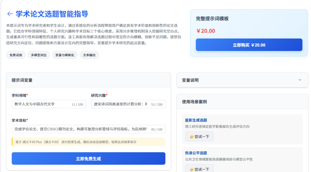 核心AI工具:学术论文选题智能指导