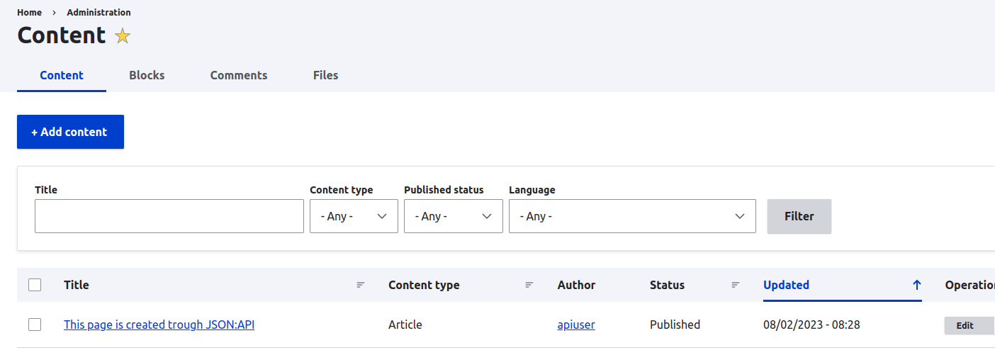 启用并配置 JSON:API 模块后,您可以开始测试并与新创建的 API 交互。