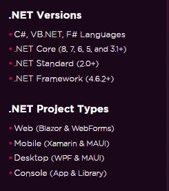 IronWord 兼容 C#、VB.NET 和 F# 等语言,并支持多种 .NET 项目类型。