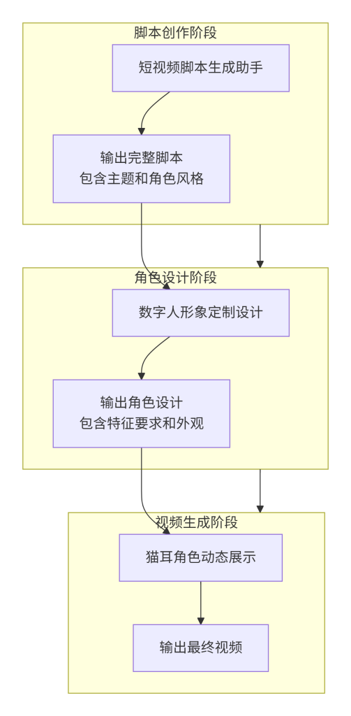 | 视频生成阶段 | 猫耳角色动态展示 | 生成角色动态视频 | 角色名称、背景风格 |