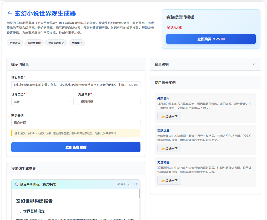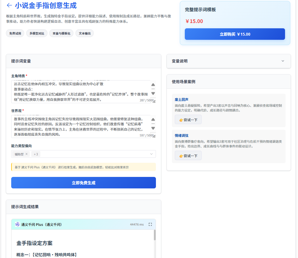 - 💰 钱包解放:告别四位数年费,核心创作功能免费可用;想要个性化、离线保存的提示词可一次性买断并下载;