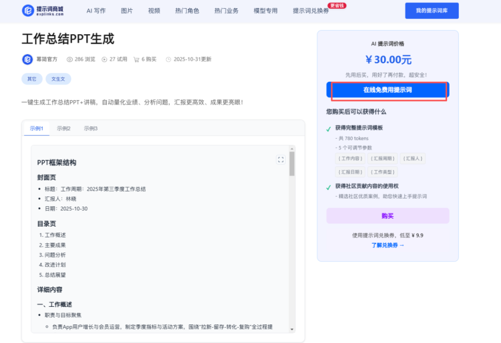 前两天看到一个网站挺有意思的,专门卖各个领域的提示词。别看着收费就跑了,也别觉得这个生意不能做。