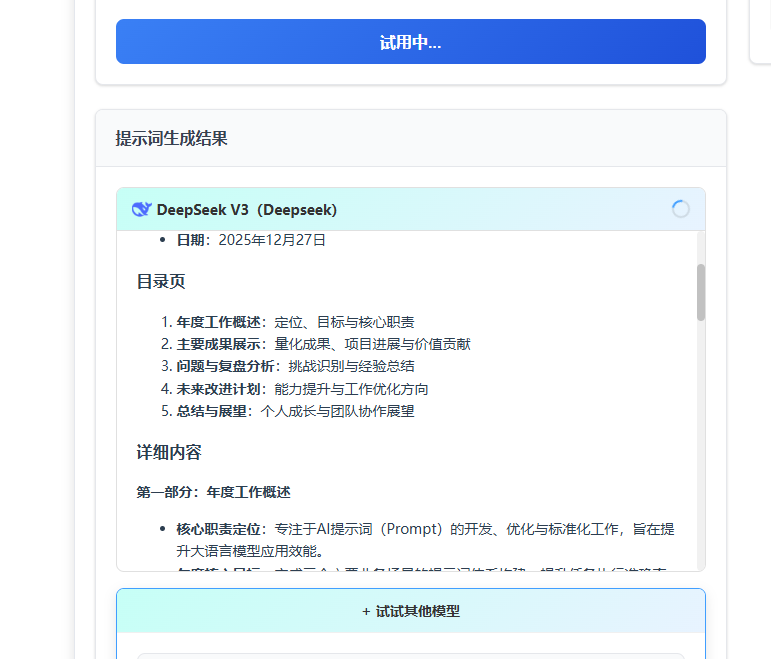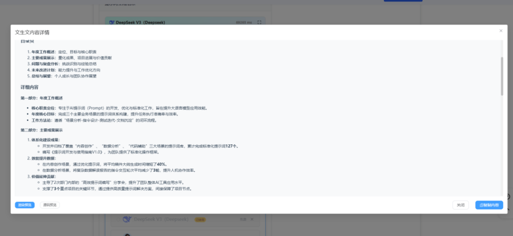 最关键的是,你还可以选择不同的大模型来看生成的结果: