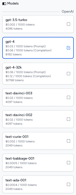 除了成本,每种模型都有特定的代币限制。这个限制包括提示和响应中使用的代币总数。例如,如果某模型的最大代币限制为4000,而提示已经使用了3500个代币,那么响应只能使用500个代币。如果生成的响应超过了这个限制,请求将失败,且不会返回任何结果。
