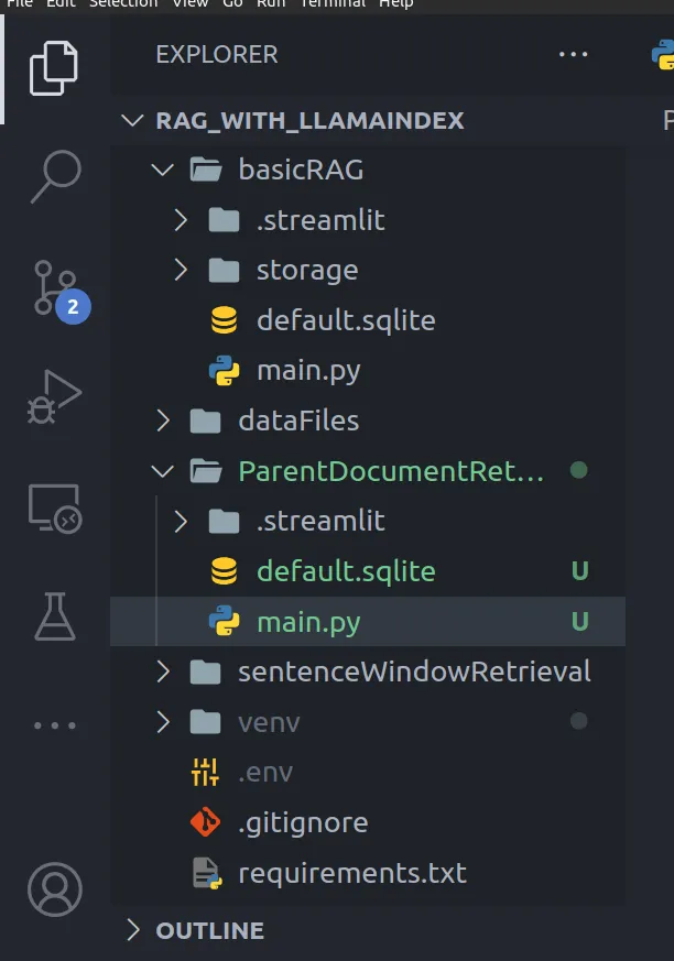 基于我们在上一篇文章中创建的项目目录设置。移动到ParentDocumentRetrieval文件夹,并在其中添加一个main.py文件。