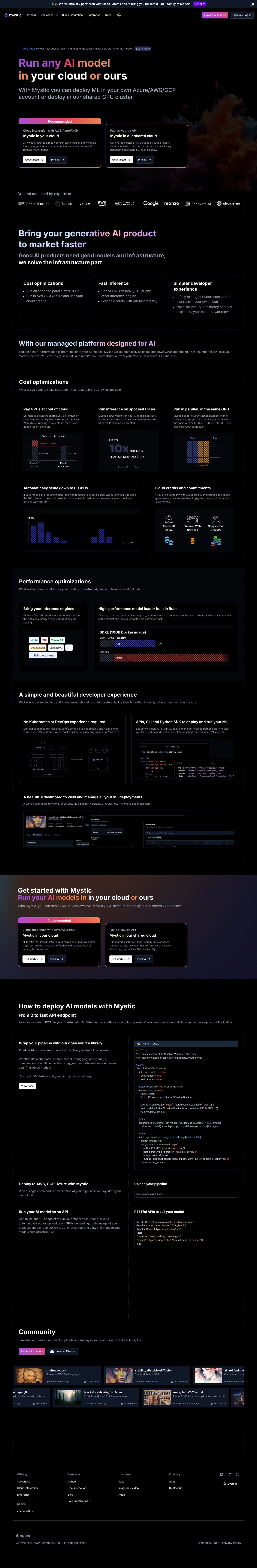 Mystic.ai是一个提供人工智能模型和API的平台,专注于提供无服务器计算和云集成服务。