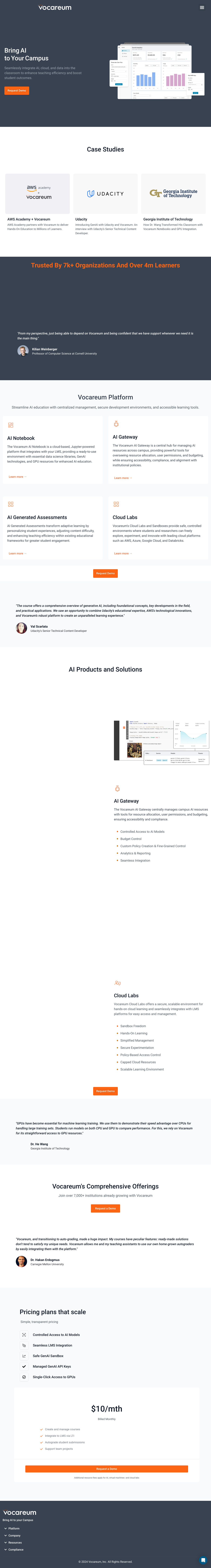 更多Vocareum是一个提供虚拟计算机实验室和计算机科学课程的平台,专注于为教育工作者和学生提供AI资源管理、交互式学习平台、数字教学资产以及云环境和云操作中心。它支持客户培训、员工培训和高等教育,旨在通过其平台为校园带来无缝和受控的生成性AI访问。