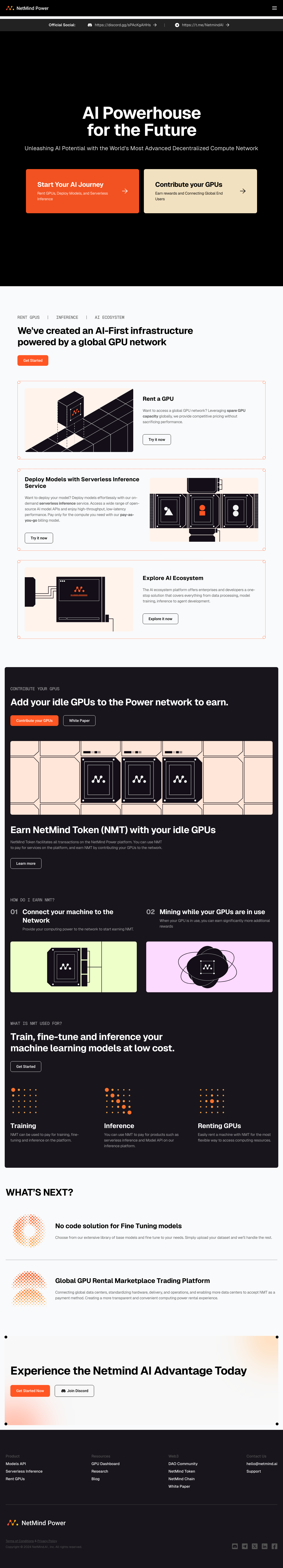 | 贡献GPU | 通过将闲置GPU加入Power网络来赚取NetMind Token(NMT)。 |