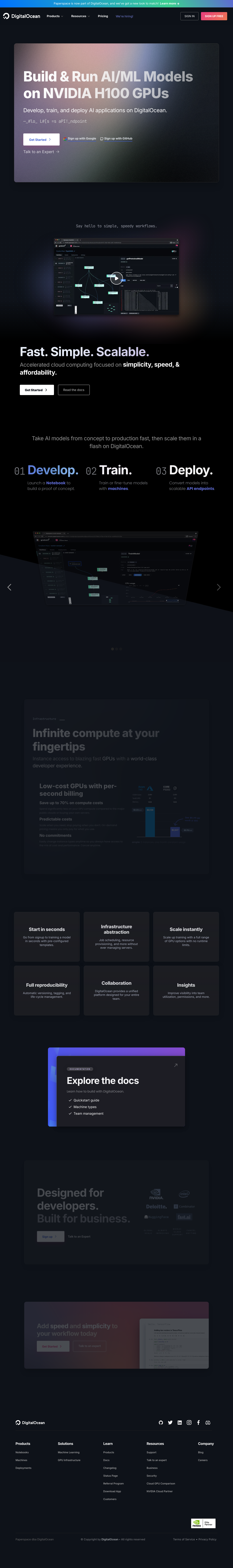 | Droplets | 提供多种配置的虚拟机,包括GPU Droplets和Premium CPU Droplet计划。 |