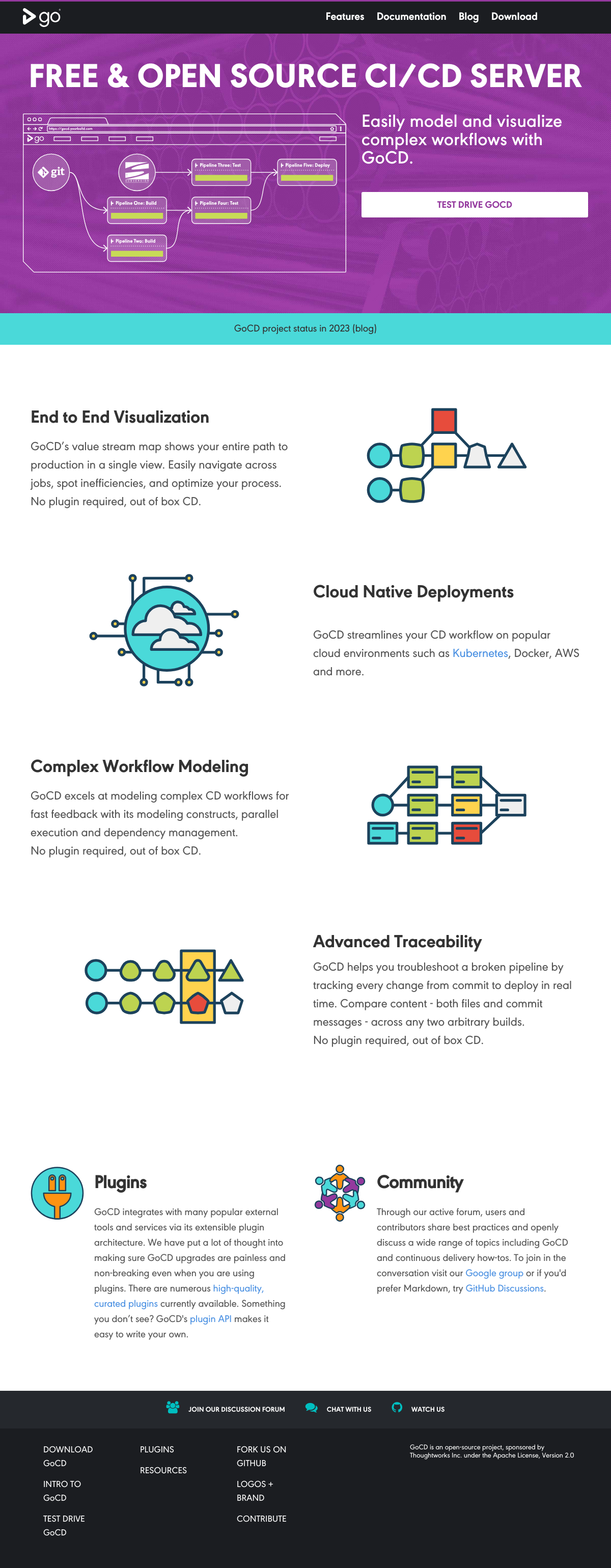 更多GoCD是一个开源的持续交付和发布自动化服务器,提供端到端可视化、云原生部署支持、复杂工作流建模和高级可追溯性等功能,帮助优化CD工作流程并实现快速反馈。