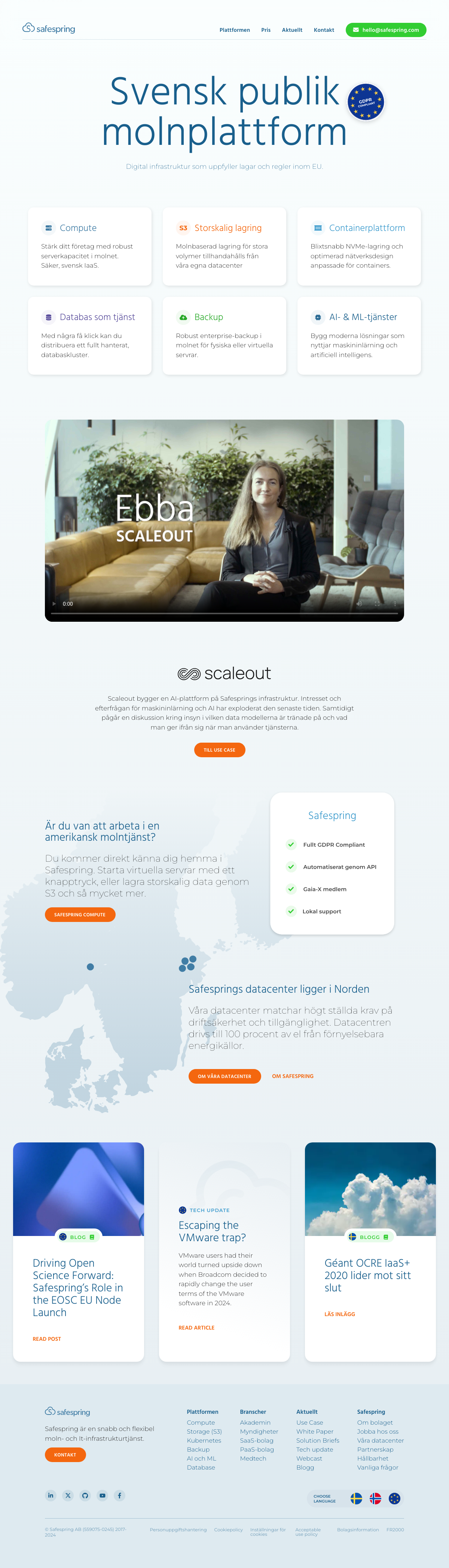 更多Safespring是一家瑞典的公共云平台,提供符合欧盟法律和规定的数字基础设施。主营业务包括云计算(IaaS)、大规模云存储、企业级备份、容器平台、数据库即服务(DBaaS)、人工智能(AI)和机器学习(ML)服务。