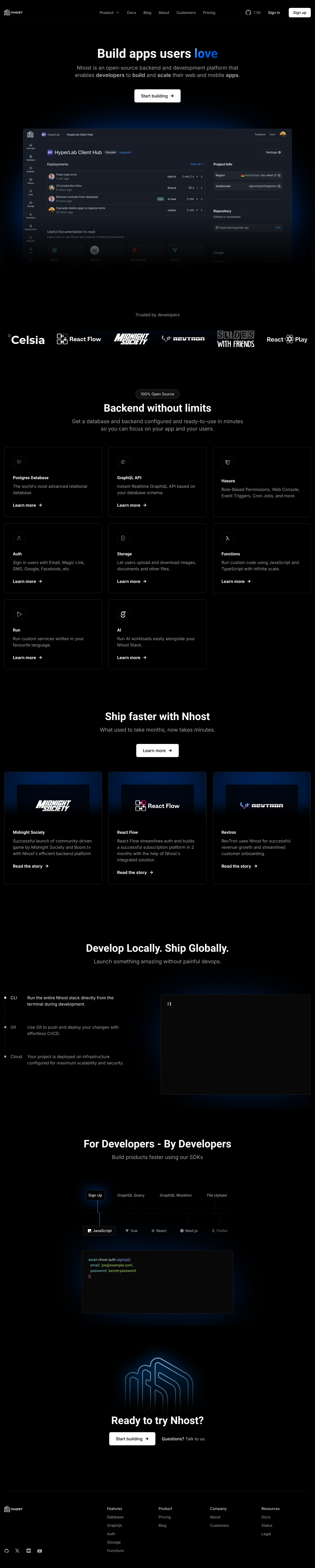 - 快速开发:开发者可以使用Nhost快速搭建应用后端,缩短开发周期。