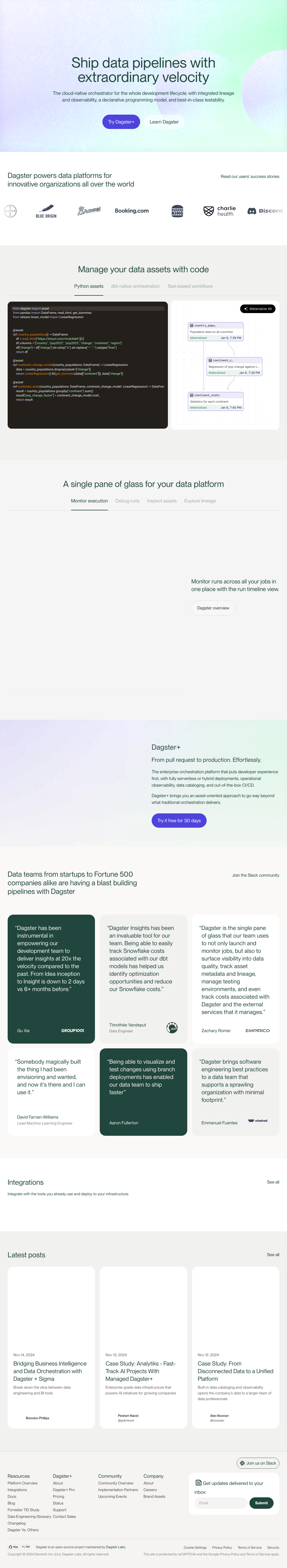 - 数据资产开发:Dagster支持从本地开发到生产环境的数据资产开发全过程。