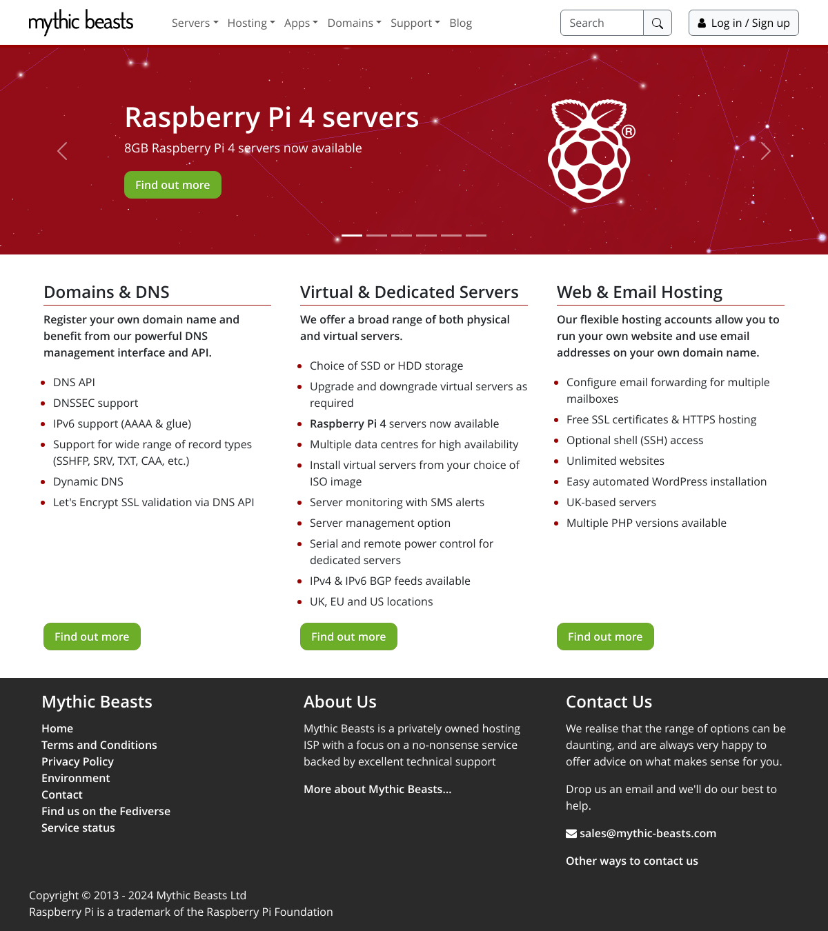 Mythic Beasts提供服务器托管服务,包括专用服务器、虚拟服务器、共位服务、托管服务和其它服务。