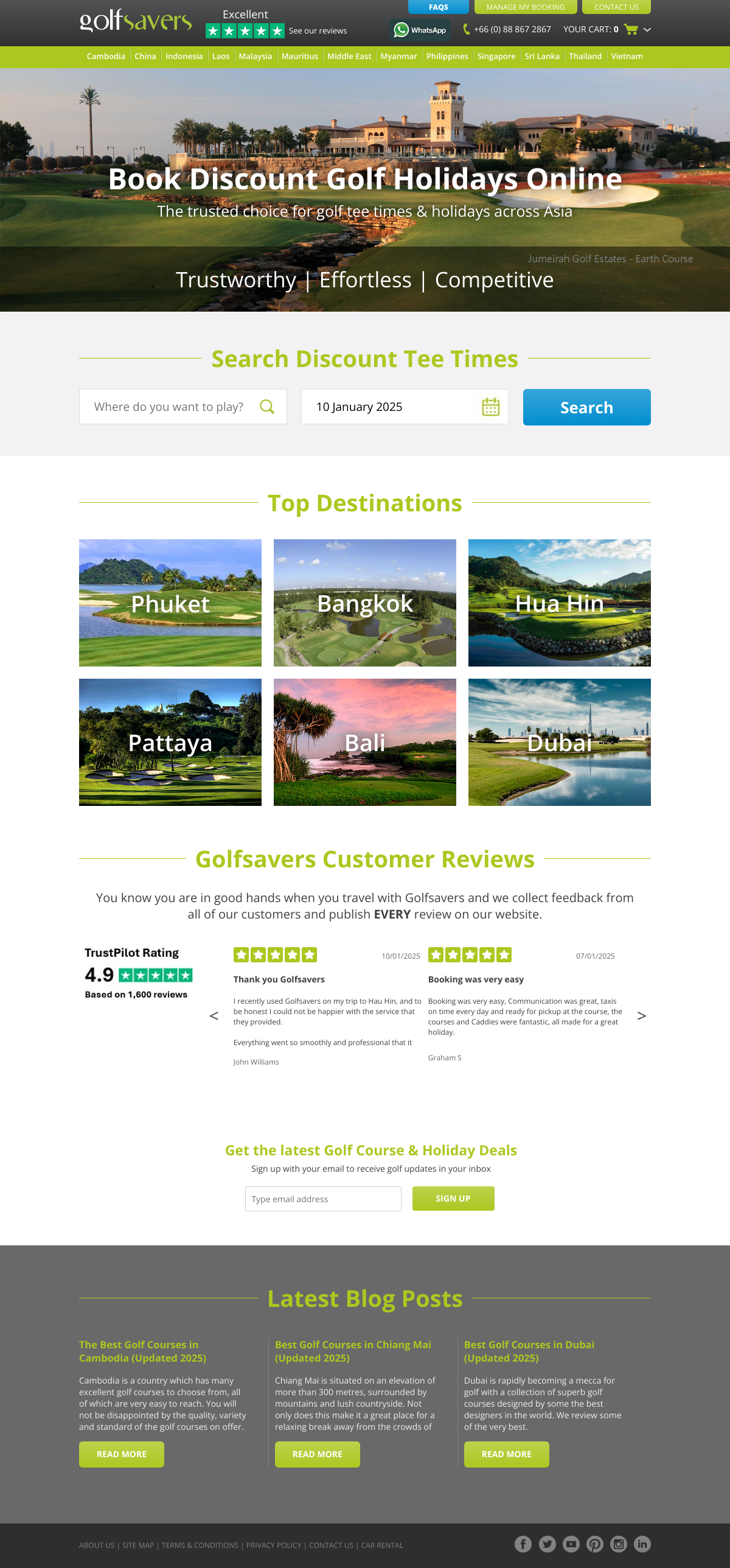 更多Golfsavers.com 提供亚洲地区高尔夫球场的预订服务,包括泰国、马来西亚、越南、印尼和柬埔寨等国家的高尔夫球假期套餐和优惠开球时间。