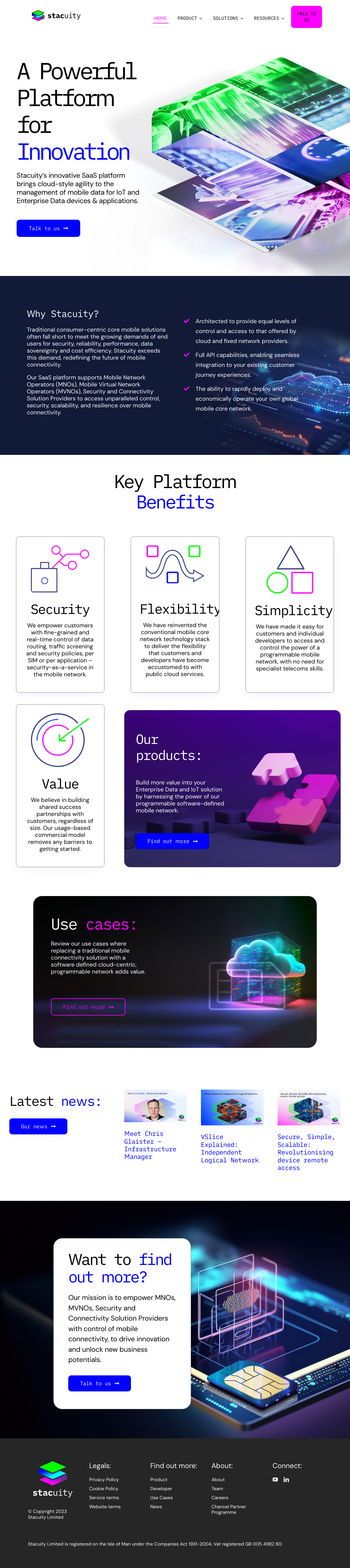 更多Stacuity是一家提供创新SaaS平台的公司,专注于为IoT和企业数据设备及应用管理移动数据。该平台支持移动网络运营商、虚拟网络运营商以及安全和连接解决方案提供商,提供无与伦比的控制、安全性、可扩展性和弹性。Stacuity通过其软件定义的全球移动核心网络,为客户提供云风格的敏捷性,重新定义移动连接的未来。
