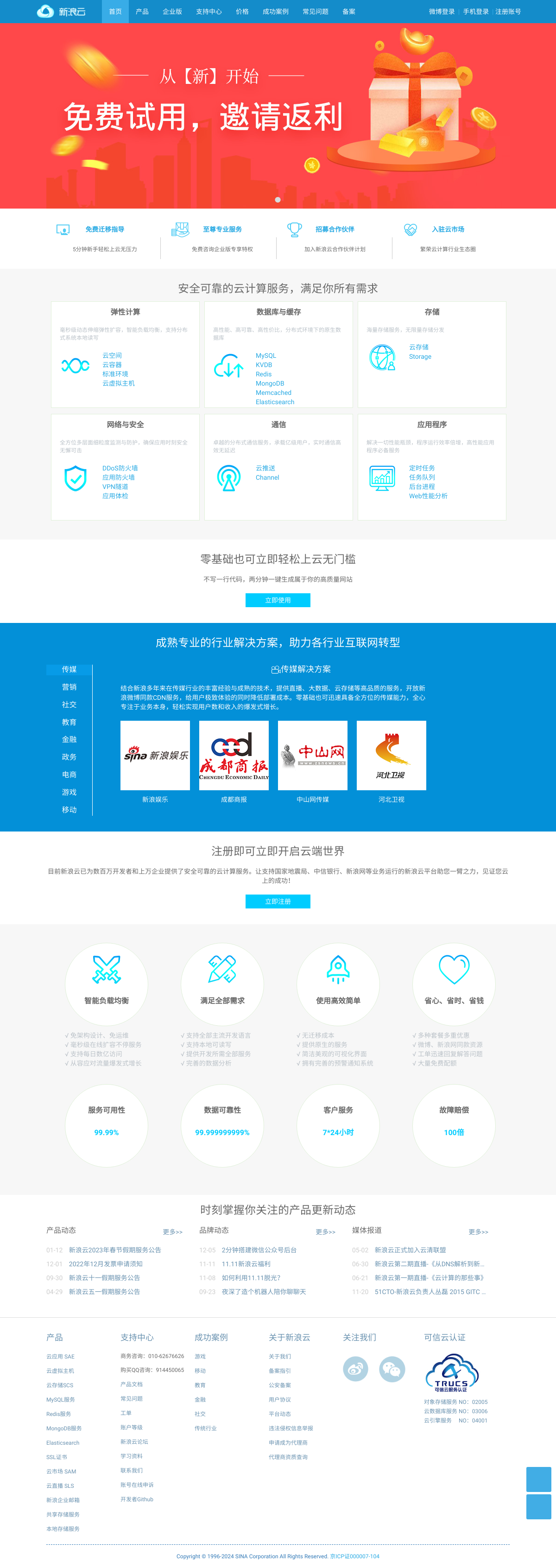 更多新浪云计算提供全面的云服务解决方案,包括弹性计算、数据库与缓存、存储、网络与安全、通信和应用程序服务。主要业务涵盖云应用SAE、云虚拟主机、云存储SCS、MySQL服务、Redis服务、MongoDB服务、Elasticsearch、SSL证书、云市场SAM、云直播SLS等,满足不同行业需求,助力企业数字化转型。