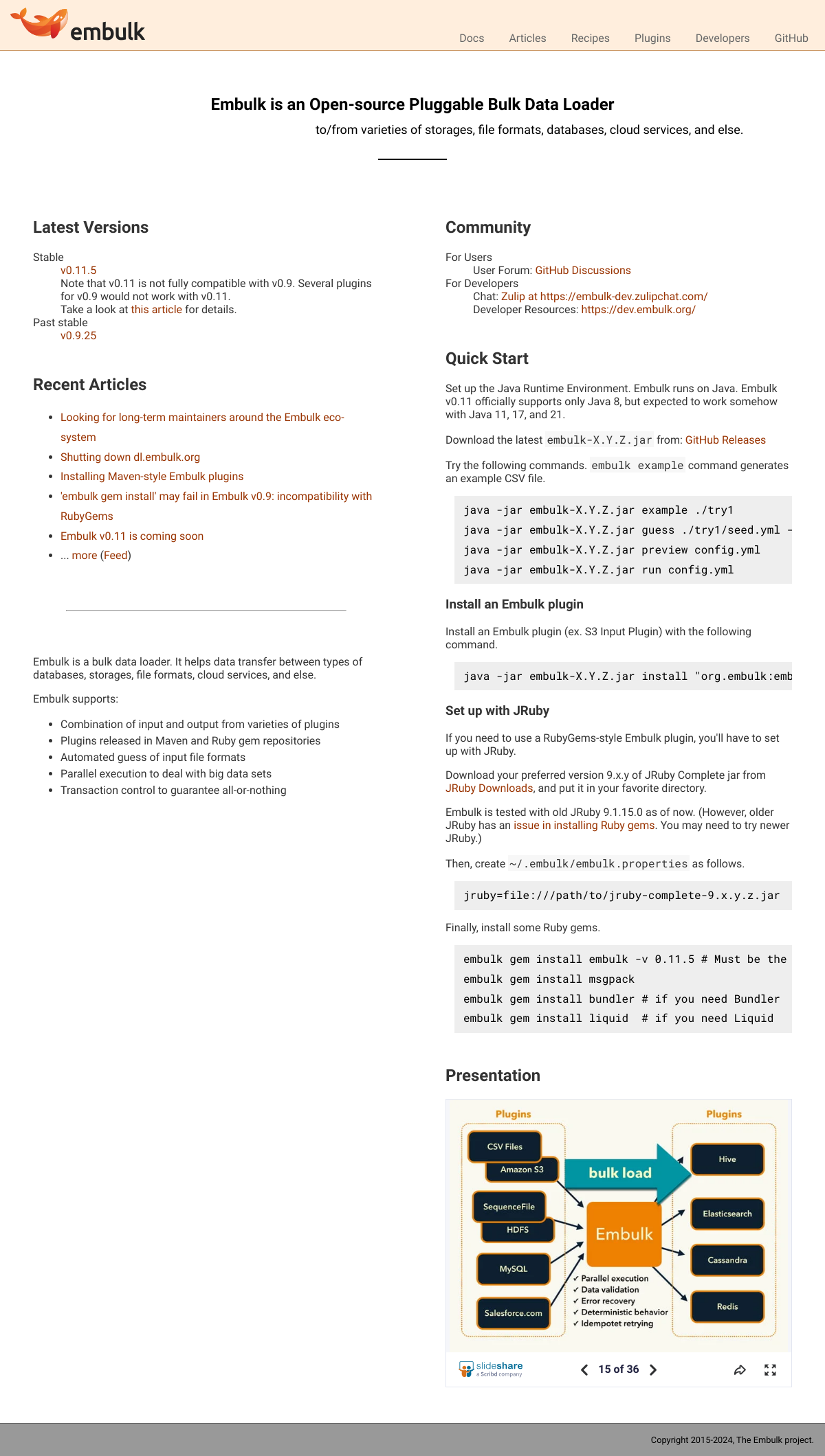 Embulk是一个开源的数据加载框架,用于将数据从一个位置批量移动到另一个位置。
