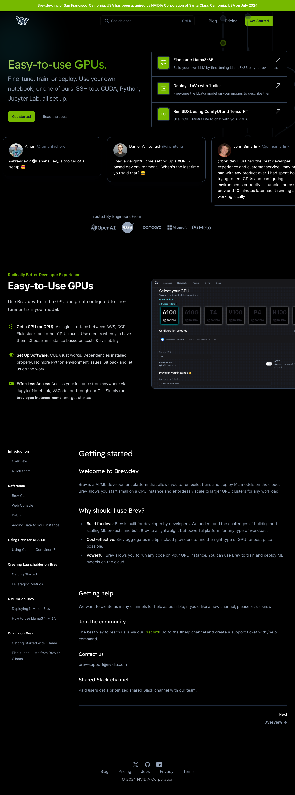 更多Brev.dev 是一个位于美国旧金山的人工智能/机器学习开发平台,提供易用的GPU服务,支持模型的构建、训练和部署。Brev.dev 通过聚合多个云服务提供商,帮助开发者以最优惠的价格选择合适的GPU资源,旨在为开发者提供一个轻量级而强大的平台,以应对各种工作负载。