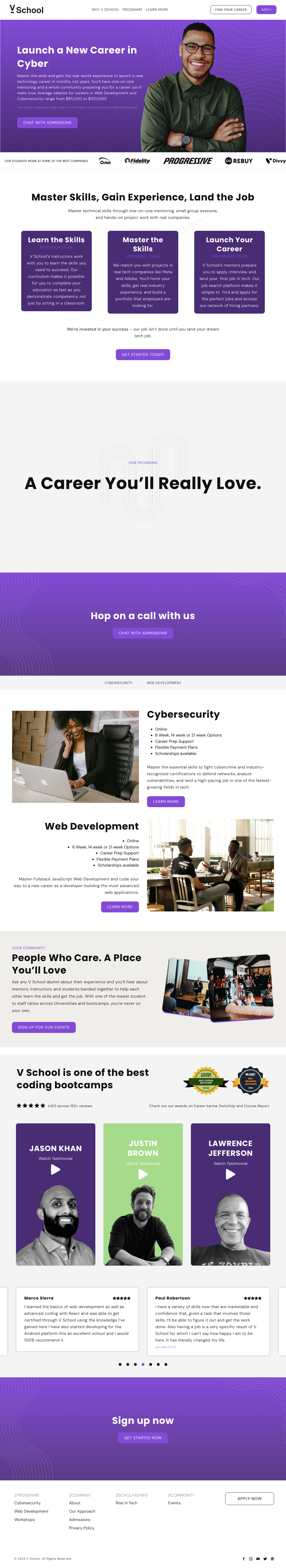 更多V School 是一家专注于技术职业培训的在线学校,提供网络安全和网页开发课程。学校通过一对一辅导、小组学习和与真实公司合作的项目工作,帮助学生快速掌握技术技能并积累实战经验。V School 强调灵活的学习计划和职业准备支持,旨在帮助学生在技术领域找到并实现他们热爱的职业。