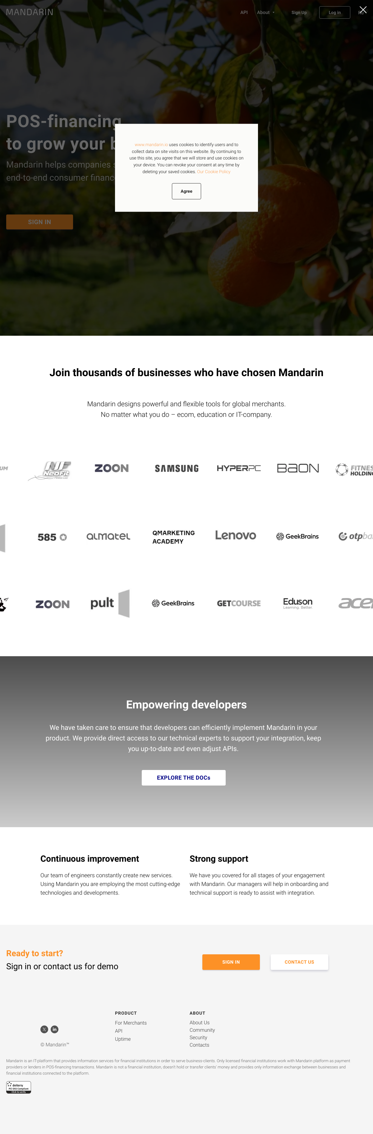 更多Mandarin.io 是一个为全球商家提供端到端消费金融IT平台的公司,帮助企业扩大全球销售。主营业务包括为电商、教育和IT公司等提供强大灵活的工具,以及为金融机构提供信息服务,以服务于商业客户。Mandarin.io 不是金融机构,不持有或转移客户资金,仅提供业务与金融机构之间的信息交换。