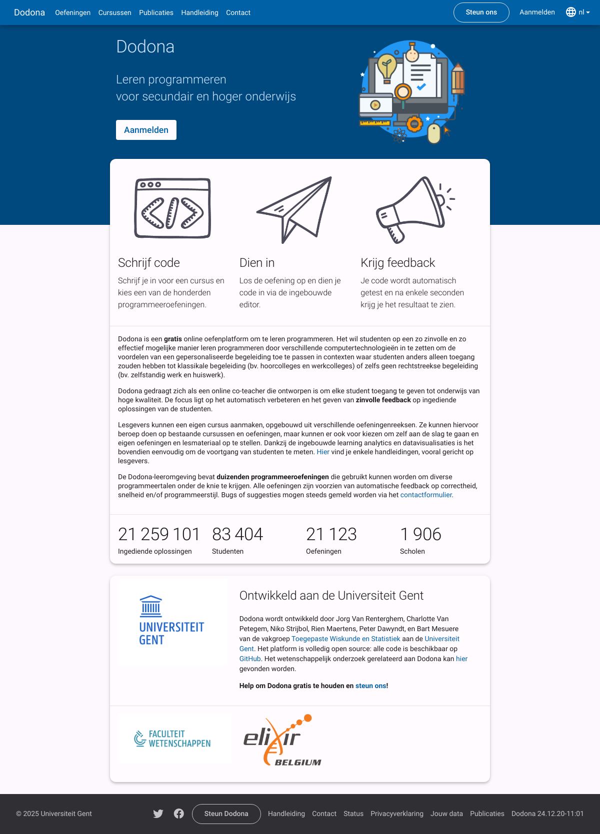 更多Dodona是一个免费的在线编程练习平台,旨在通过计算机技术提供个性化指导,帮助学生有效学习编程。平台提供自动评测和反馈,教师可创建课程和练习,平台拥有丰富的编程练习资源,并完全开源。
