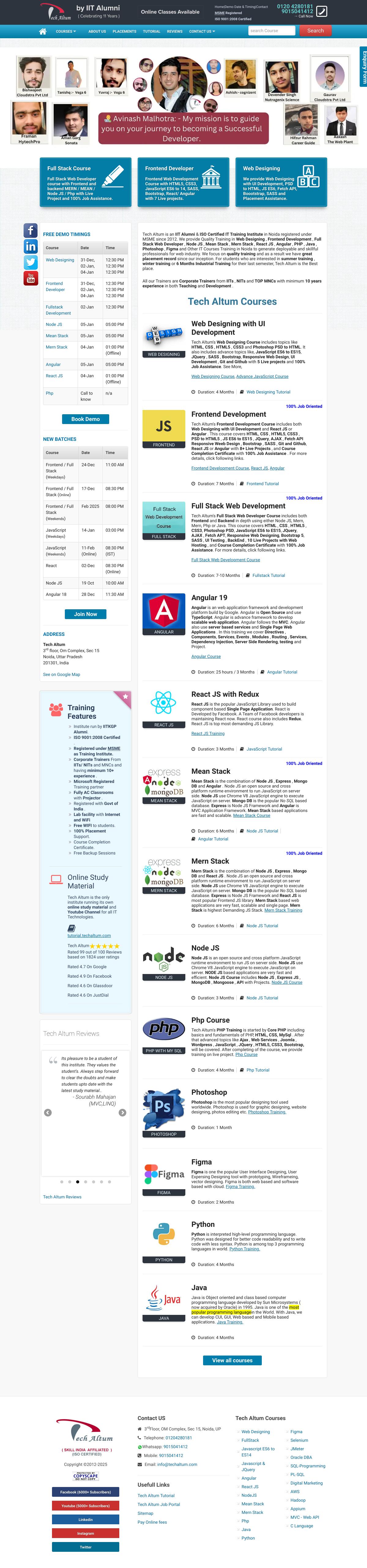 更多Tech Altum是一家成立于2012年、注册于MSME的IIT校友及ISO认证的IT培训机构,位于诺伊达。主要提供包括网页设计、前端开发、全栈开发、Node.js、MEAN/MERN栈、React.js、Angular、PHP、Java、Photoshop、Figma等在内的IT课程培训,旨在培养可部署、技能娴熟的网络行业专业人才。
